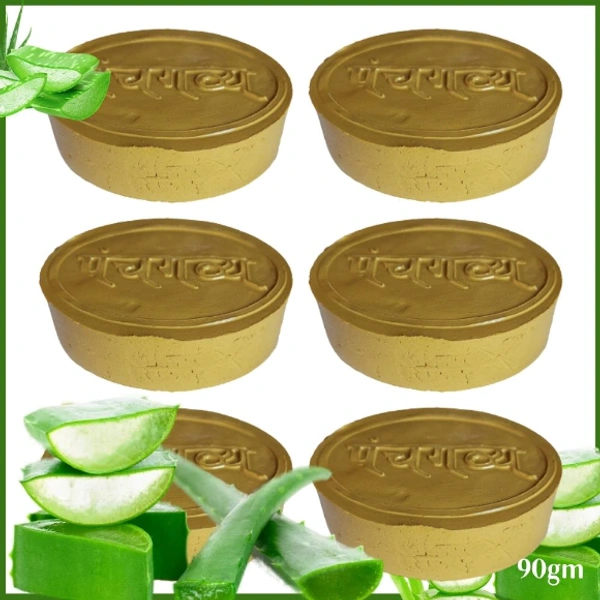 Panchgavya Aloe vera Sabun is a completely Chemical-free & Non-Foaming Soap, it is made of Multani Mitti, Aloe vera Juice, Turmeric, Gram Flour, Aamla, Harad, Baheda, Lemon, Holy Basil, Reetha, Shikakai, Neem Oil, Coconut Oil, Lentil Powder, Bhringraj, Hina, Bakuchi, Manjistha, Sesame Oil, Camphor, White Turmeric, Brahmi, & Panchgavya (Cow dung, Cow Urine, Butter Milk, Curd, Milk, Ghee).