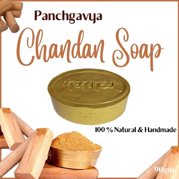 Panchgavya Chandan Sabun is a completely Chemical-free & Non-Foaming Soap, it is made of Multani Mitti, Chandan Powder, Turmeric, Gram Flour, Aamla, Harad, Baheda, Lemon, Holy Basil, Reetha, Shikakai, Neem Oil, Coconut Oil, Lentil Powder, Bhringraj, Hina, Bakuchi, Manjistha, Sesame Oil, Camphor, White Turmeric, Brahmi, Cow dung, Cow Urine, Butter Milk, Curd, Milk, Ghee.