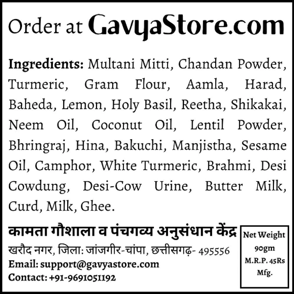 - 100% Natural: Made by Multani Mitti, Panchgavya, and Natural Herbs.