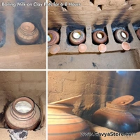 - Our Gir Cow's milk is boiled in earthen pots (Mitti ki Handi) on a traditional chulha for 6 to 8 hours on a low flame, due to which the colour of milk becomes golden.